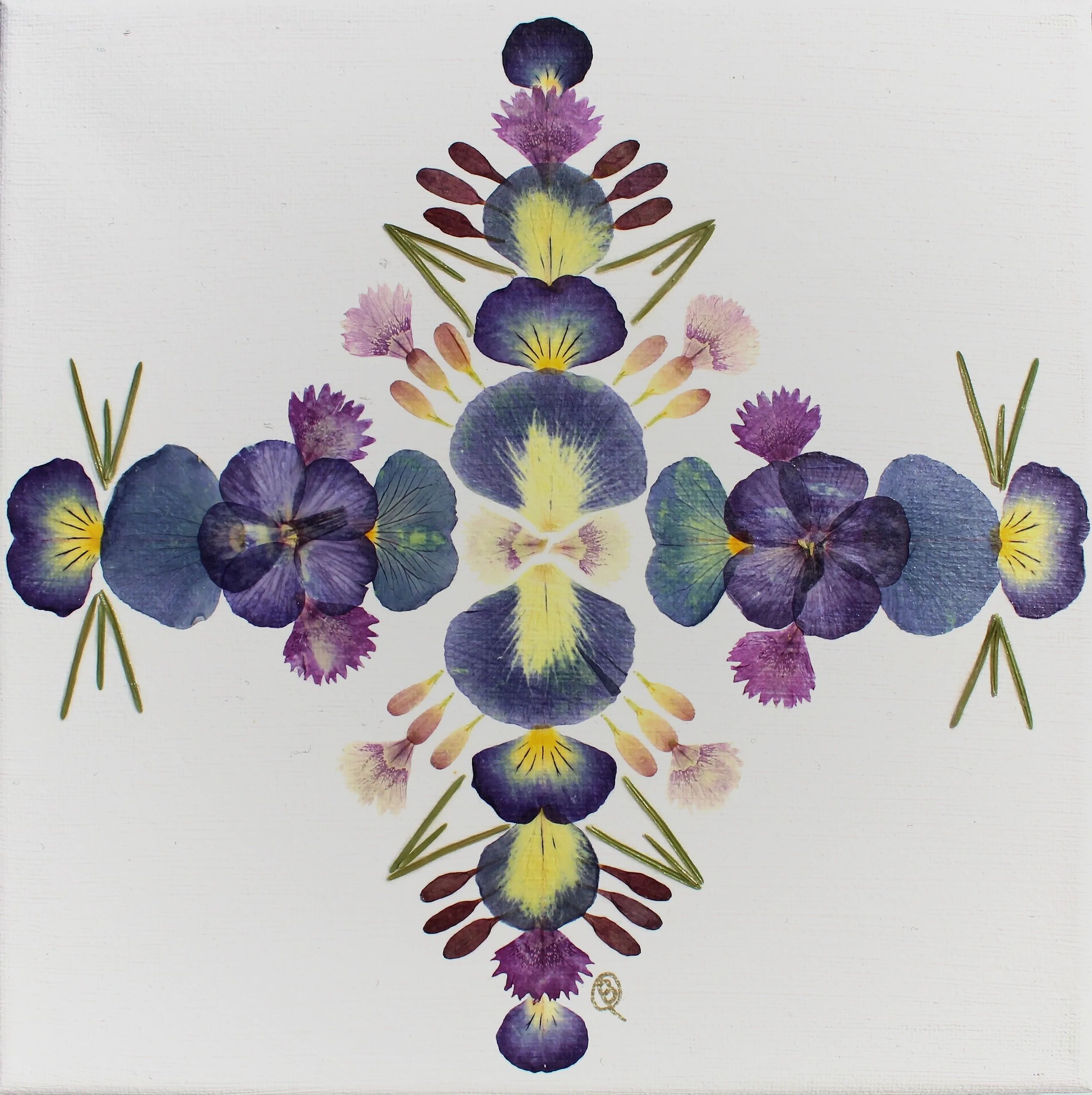 queen b began with a desire to grow colourful flowers with which to create tasty, beautiful goodies - from nasturtiums to pansies, dianthus to marigolds. the short Canadian growing season forced adaptation to take advantage of tasty, beautiful blooms beyond the growing season - and so pressing petals for the off-season became the main quest. from here queen b grew a new branch into pressed flora art including non-edibles, and continues to grow and branch in style & materials